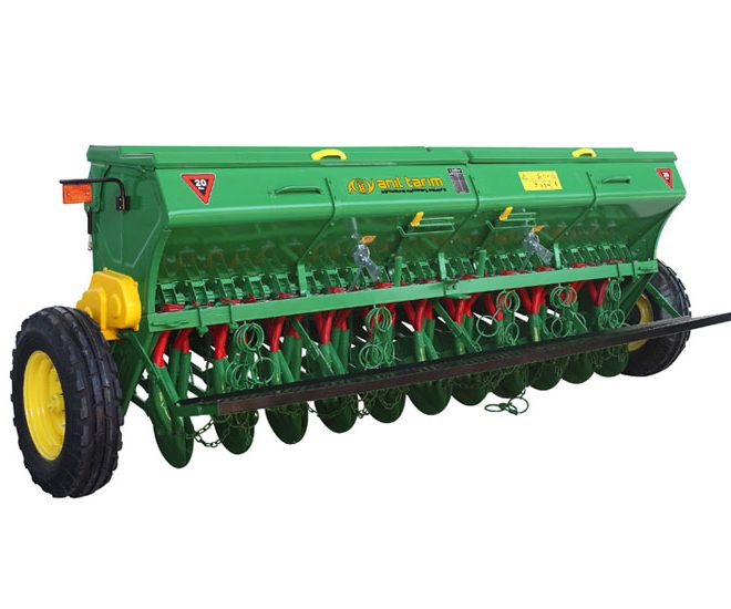 Pneumatic seed drill can be easily connected to the tractor’s three point hitch system and powered by a cardan shaft connected to the power take-off tractor. The machine is particularly suitable for precision seeding, for multi-purpose use and it is suitable for all kinds of tilled land. The seeding machine is pneumatically operated. The crops such as corn, cotton, sugar, beet, sunflower, chickpea, bean, tomato can be sowed by the special seed discs easily. Pneaumatic seed drill is used especially with the special seed discs and different accessories. And also the interrow distance of the machine is manually adjustable. The operating manuel that includes spare parts list is given to the customer with the machine.
