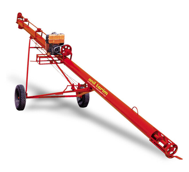 Los sinfines motorizados se utilizan para producir granos como cebada, trigo, girasol, frijoles, etc. Las operaciones de carga y descarga de productos de legumbres también se utilizan para productos granulares (materias primas plásticas, cemento, etc.) con motorreductor. Toma el movimiento del motor eléctrico por medio de una polea. Hay 3 tipos principales de sinfines de motor según la capacidad, la altura de carga y la fase del motor eléctrico. Se fabrica en 5 modelos, con un diámetro de tubería de 114-139-168-192-220 mm, según su capacidad. Se fabrica en 5 modelos, 4-6-8-10-12 metros, dependiendo de la altura de carga. Según la fase del motor eléctrico, se fabrica en 2 modelos en 220 V bifásico (sólo para diámetros de tubería de 114 y 140 mm) y 380 V trifásico. La altura de carga se puede ajustar con el sistema de cuerda de polea.